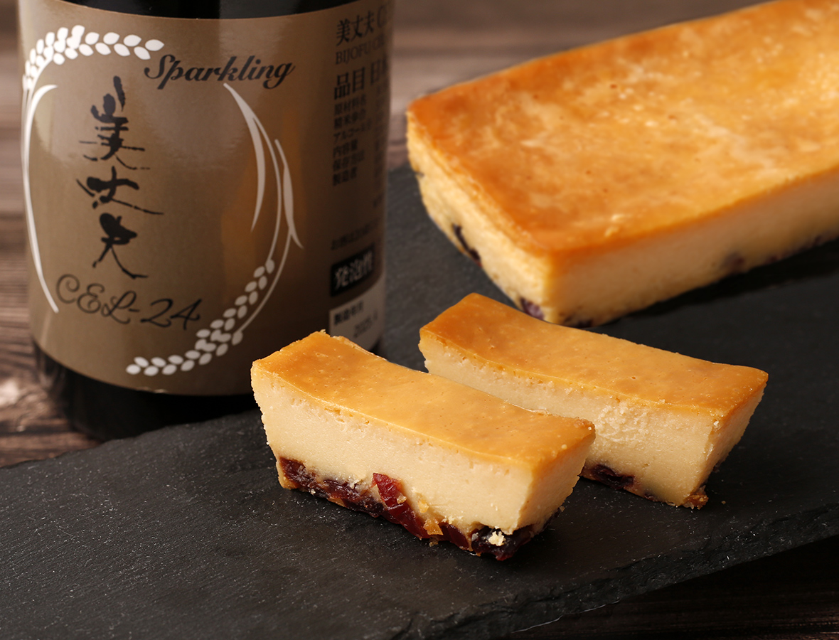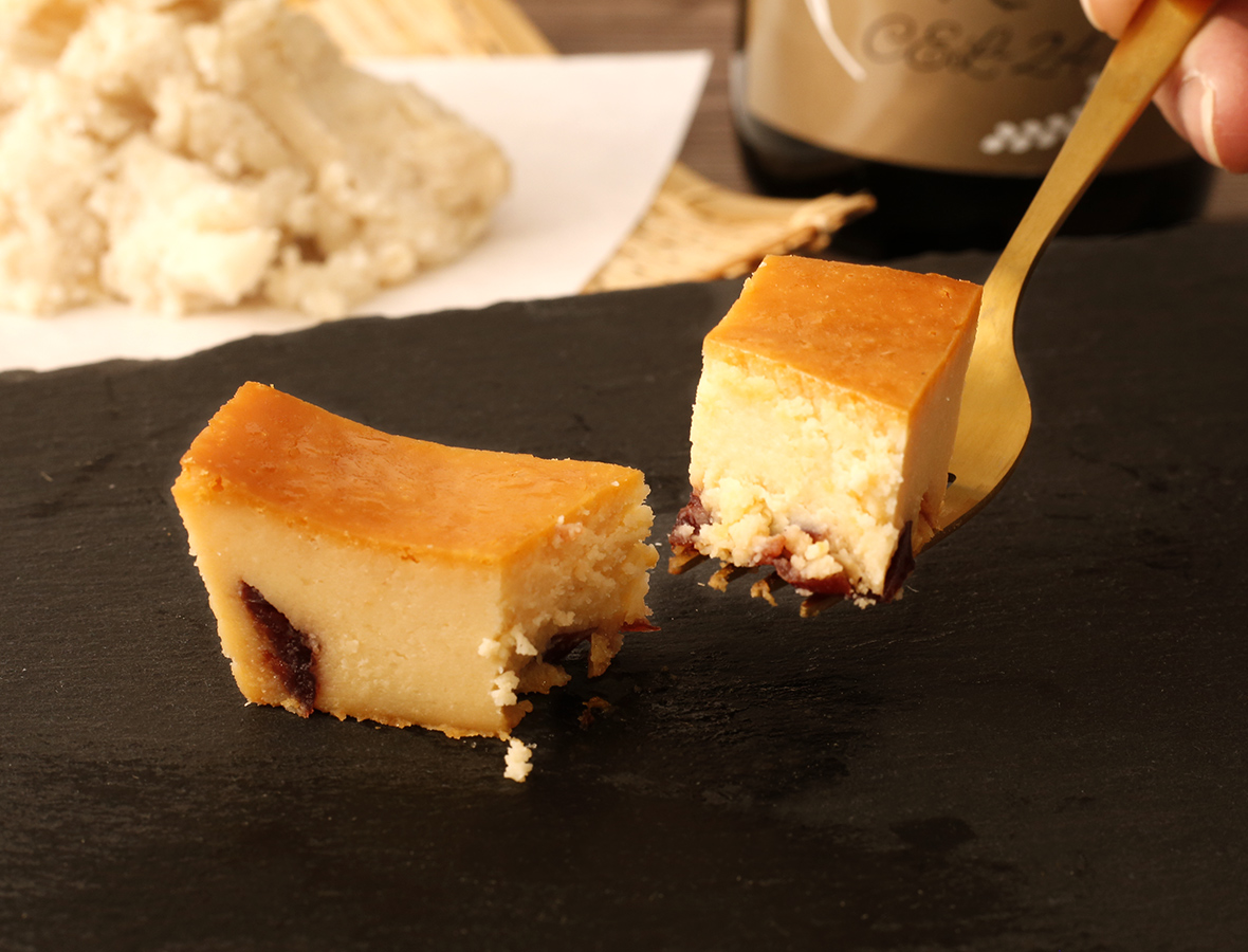 その華やかな香りを持つ吟醸酒酵母で仕込まれた「美丈夫 CEL-24」の風味豊かな酒粕と、高知県香美市に位置する、周年放牧の雪ヶ峰牧場で健康に育ったジャージー牛の濃厚なミルクを合わせた、『酒粕ベイクドチーズケーキ』が誕生しました。